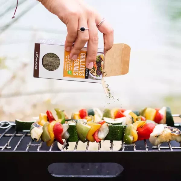 Les Fleurs d’Épices Grillades de Légumes à base de romarin, livèche, thym…offrent un bouquet d’aromates pratiques pour colorer et parfumer vos légumes saisis ou grillés au barbecue et à la plancha.