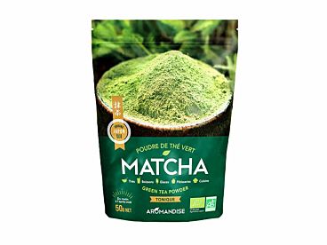 Ce thé vert matcha est fabriqué à partir de jeunes feuilles de thé de première qualité passées à la vapeur puis séchées et réduites en poudre à l’aide d’une meule de pierre.